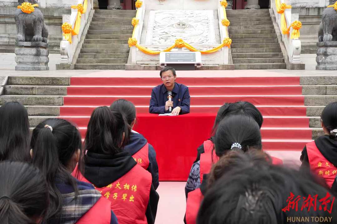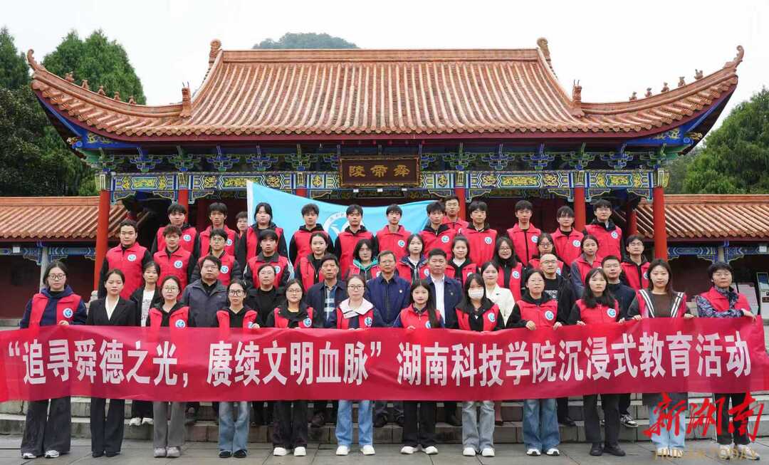 湖南日报·新湖南客户端11月12日讯(通讯员 谷利梅 吴伊娜 向薛峰)当历史典籍碰上实地走访,当古代先贤对话当代青年,思政教育应该如何打破边界、“破圈”育人?近日,湖南科技学院30余名舜德学子代表奔赴永州市宁远县舜帝陵,开展了一堂沉浸式“移动思政课”,通过实地探访感悟舜德精神,筑牢文化自信。