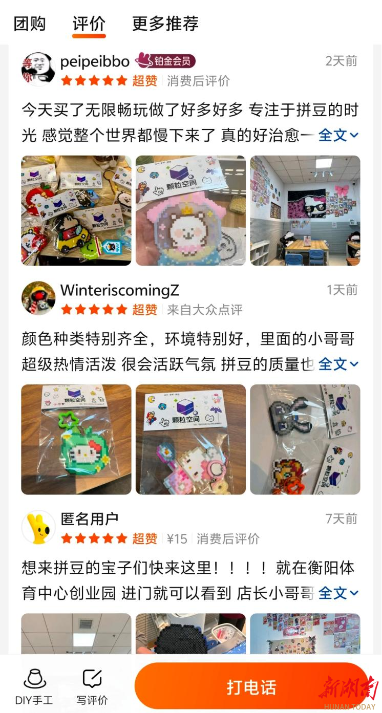 “专注于拼豆的时光感觉整个世界都慢下来了,做了一天感觉心情很好。”体验过的顾客纷纷在线上平台留下好评。