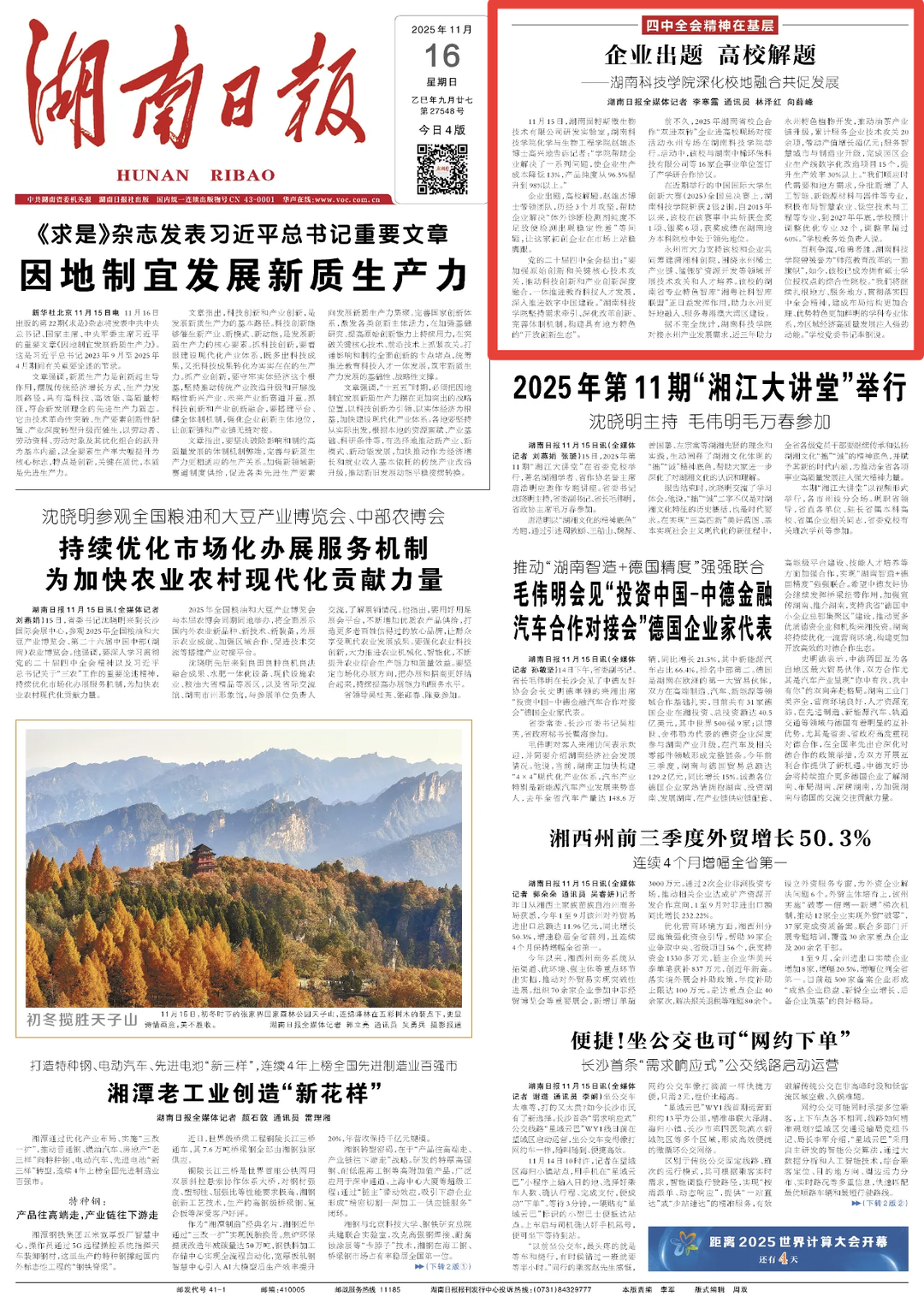 党的二十届四中全会提出:“要加强原始创新和关键核心技术攻关,推动科技创新和产业创新深度融合,一体推进教育科技人才发展,深入推进数字中国建设。”湖南科技学院坚持需求牵引、深化改革创新、完善体制机制,构建具有地方特色的“开放创新生态”。