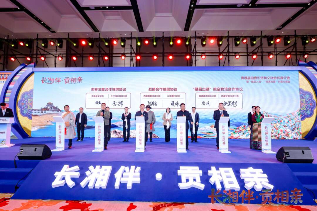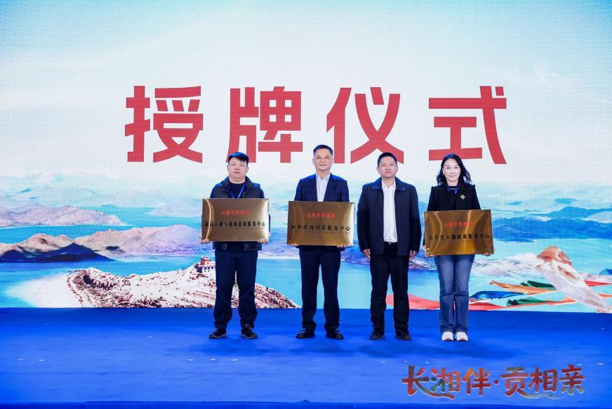 活动高潮环节,“贡嘎藏品入湘与湘客游藏服务中心”“贡嘎大学生入湘就业服务中心”“贡嘎区外招商引资服务中心”正式授牌。三大中心的成立,标志着湘藏协作从单次对接向长效机制转变,为两地产业互通、人才交流、文旅联动搭建起常态化平台,让“藏品入湘、湘客游藏”有了坚实的服务支撑。