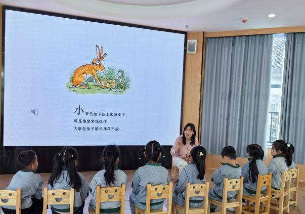 本次送教活动内容丰富、形式多样,由工作室核心成员朱园主任主持。工作室核心成员尹学华园长首先展示了大班音乐活动《大象和小蚊子》,她以生动的故事和富有感染力的律动,引导孩子们在音乐的世界里尽情徜徉,展现了游戏化教学的独特魅力。随后,工作室成员陈思怡副园长带了中班语言活动《猜猜我有多爱你》,带领孩子们感受爱与表达爱。唐雅璐老师带来了大班艺术活动《千里江山图》,她巧妙地将中国传统名画艺术融入幼儿课堂,引导孩子们感受国画的意境之美,激发了他们的民族自豪感与艺术创造力。