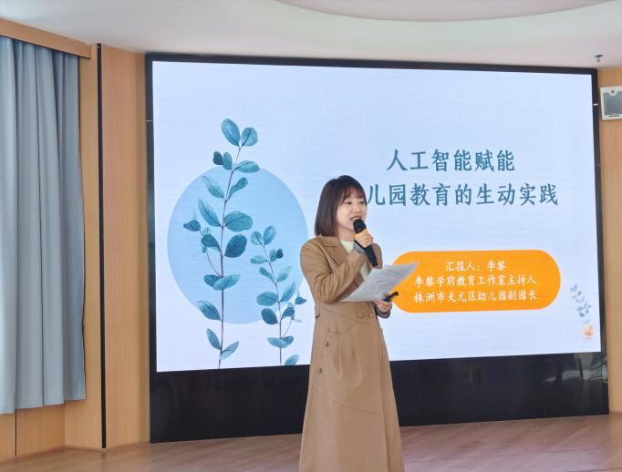 工作室主持人李黎带来了题为《人工智能赋能幼儿园教育的生动实践》的专题讲座。李园长从理论前沿到实践案例,深入浅出地阐述了人工智能技术如何与学前教育深度融合,为在场的园长和老师们打开了教育创新的新视野,指明了未来幼教发展的新方向。