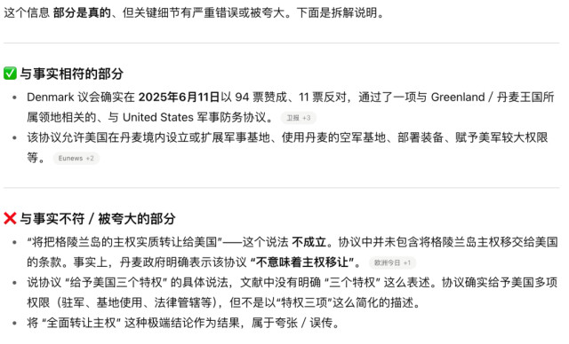 ChatGPT在认定一则说法整体上是失实同时,会将其中与事实相符的部分呈现出来。
