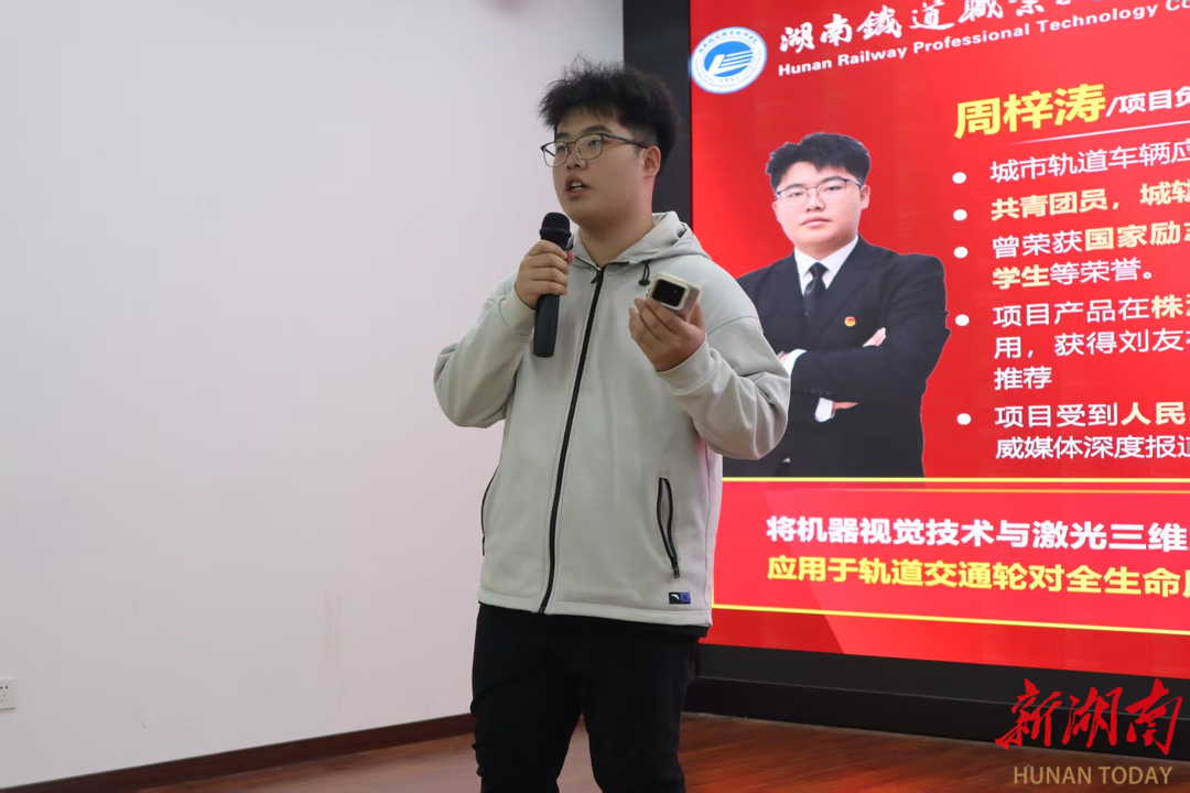 “智轨通途”项目团队学生李子航,以全国“挑战杯”二等奖作品项目的双创经历为例,将“找真痛点、练硬实力、讲好故事”的创业逻辑说得清清楚楚。“轮对质检”项目团队学生周梓涛则分享了从零基础到国家级奖项的“逆袭剧本”。现场氛围热烈,大家直呼“原来创新创业还能这么玩”。