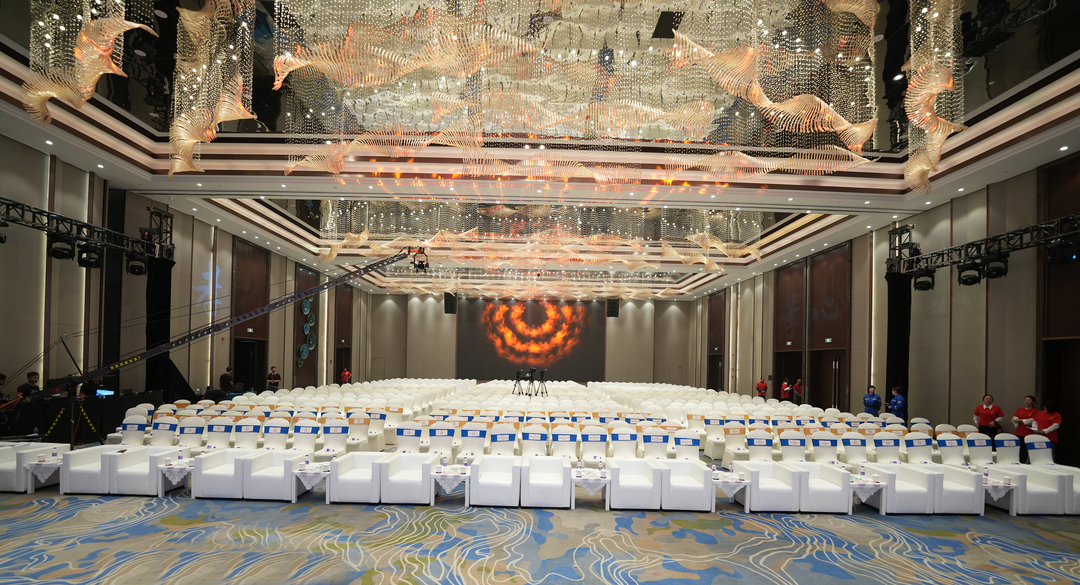 酒店主楼的会议与宴会场地总面积 3410平方米,分布在一楼和三楼。其中,1060平方米的无柱式金桥厅和650平方米的无柱式望城厅均层高8米,另有1200平米的展厅和9间中小型面积不等的功能厅。在中国工匠文化博览园内还有建筑面积1.8万平方米的心之力大会堂,能满足大型会议宴席接待的需求。