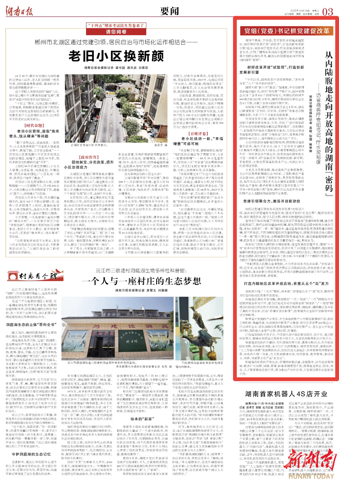 今年6月起,省直机关工委、湖南日报联合推出湖南省直机关《党组(党委)书记抓党建促改革》访谈专栏,聚焦“党建业务双融合”,通过“书记谈责任、一线看实绩、群众评成效”,展现湖南以党建破题改革、以改革强基固本的鲜活实践。