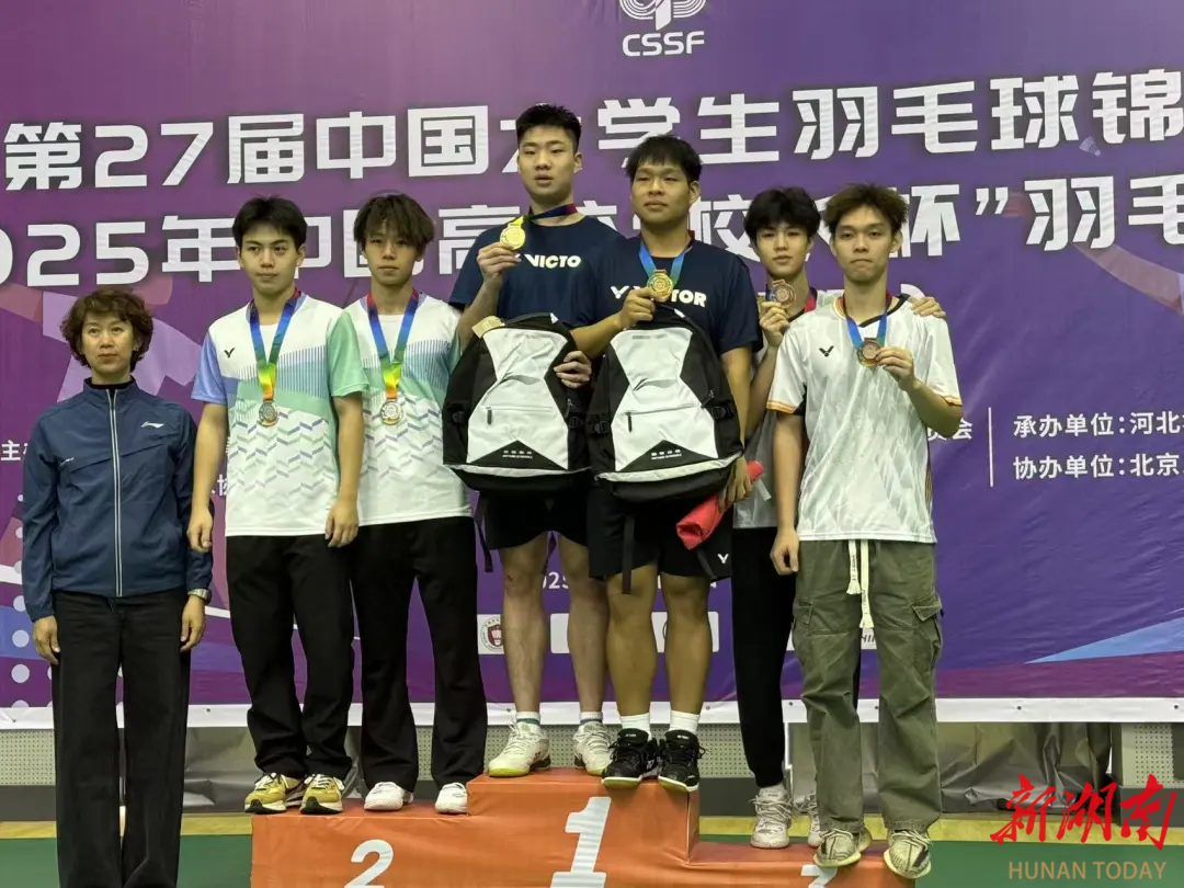 11月2日至8日,球队首站挥师河北邢台,亮相第27届中国大学生羽毛球锦标赛赛场,与全国各地高等院校的顶尖选手同场竞技;赛程结束,队员们未作休整便马不停蹄,于11月8日至16日移师湖南怀化,投身2025年湖南省大学生羽毛球比赛的激烈角逐,直面全省高校的强劲挑战。在历时15天的高强度连续征战中,队员们最终获得3枚金牌、2枚银牌、1枚铜牌的优异成绩,实现了自建队五年以来的历史性突破。