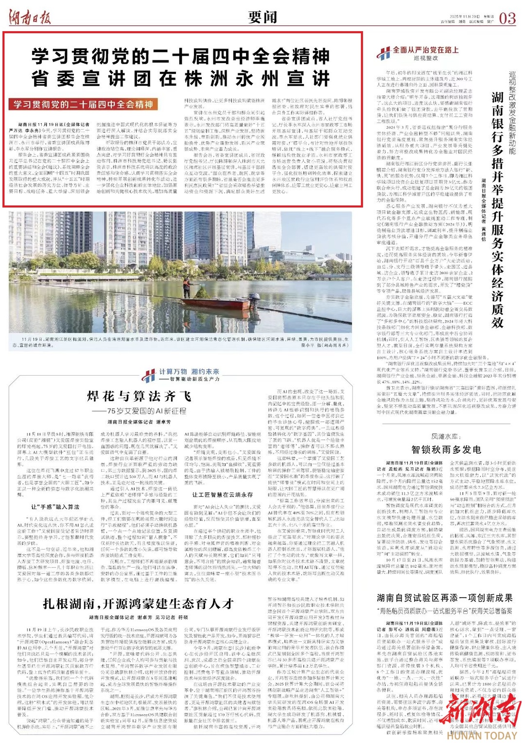 省委宣讲团成员,省人社厅党组书记、厅长李永军深入永州市家政零工市场开展基层宣讲,与基层干部群众互动交流。李永军要求,人社部门要强化就业供需对接,广搭平台,有针对性地开展技能培训,依托“线上+线下”融合服务模式,缓解结构性就业矛盾。永州市家政零工市场运营负责人贺小花说,将坚决贯彻落实全会部署,搭建更高效的供需对接平台,强化技能培训转化效率,探索建立永州地区家政行业信用评价体系和权益保障体系,让零工就业更安心,让雇主用工更放心。