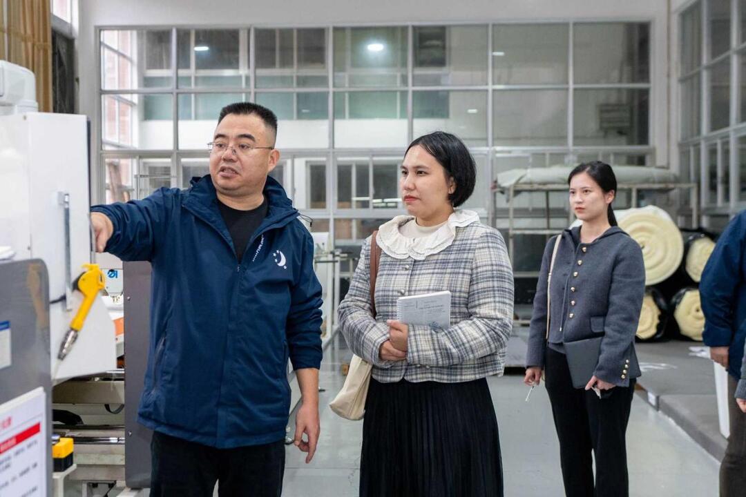 记者探访晚安集团床垫生产车间,实地采访车间负责人。