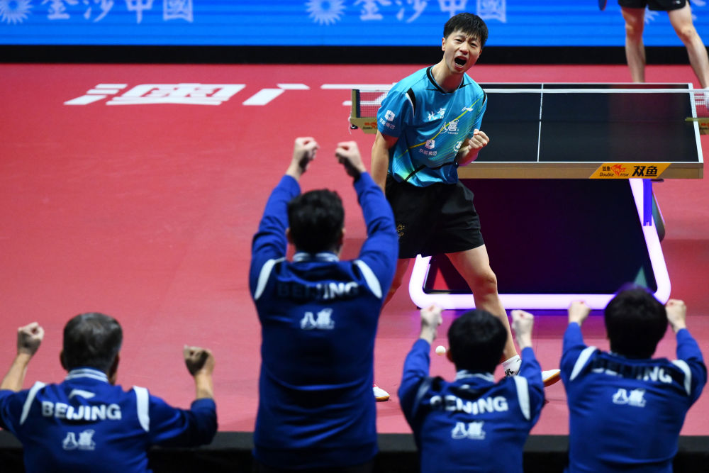 第四盘,单打刚输给樊振东的王楚钦3:0战胜许昕。当最后一球落地,北京队欢呼雀跃。