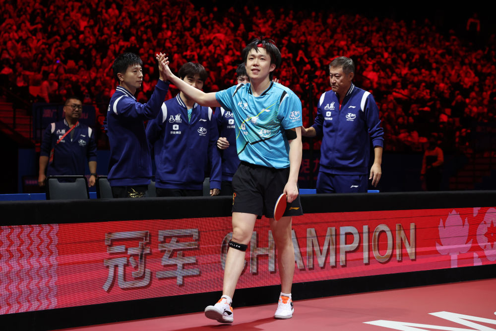 “我们(北京队)准备了32年才拿到这枚金牌。这次参赛的运动员中,我们的年龄结构是老中青,马龙是最后一次全运会;王楚钦25岁,是‘中年’;最小的是黄友政(20岁),所以我们今天拿到金牌,我要感谢我们的运动员。”张雷说。