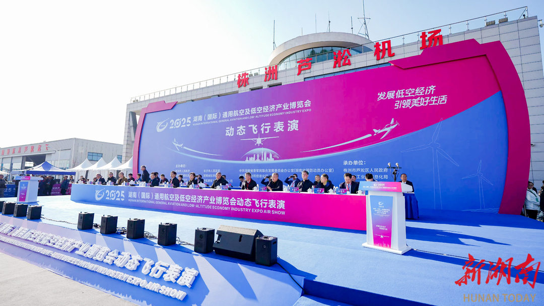 湖南日报·新湖南客户端11月21日讯(记者 张永琼 通讯员 罗金鹏 杨丹) 11月21日下午,湖南株洲芦淞机场引擎轰鸣,2025湖南(国际)通用航空及低空经济产业博览会动态飞行表演盛大启幕。