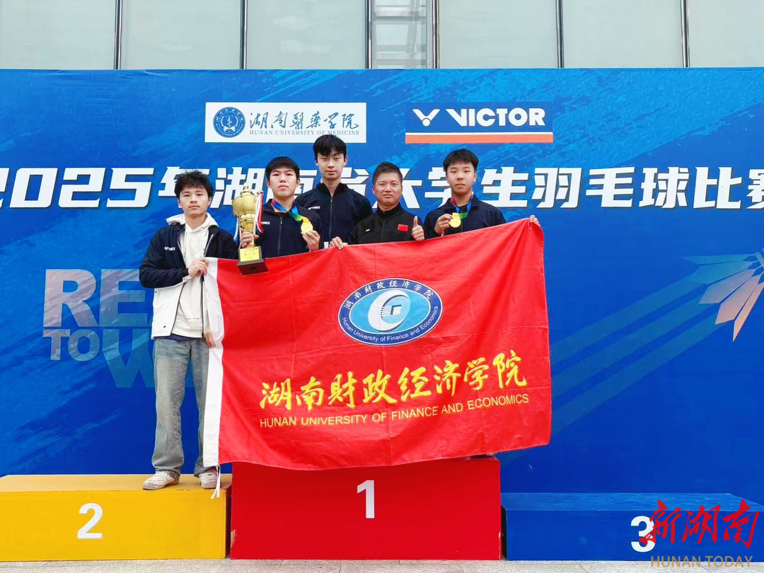 湖南财政经济学院羽毛球队在近日落幕的湖南省大学生羽毛球比赛中表现优异,共夺得4金1银1铜,并首次包揽男子团体与女子团体冠军,创下校史最佳战绩。