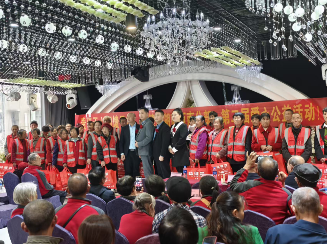 10月31日,隆回县金石桥镇的第三届孝道文化节以公益捐赠为核心。益健霖西南分部为当地环卫工人捐赠价值 37200 元的羊奶、益生菌等营养品,分部负责人胡燕个人捐赠保暖衣、保温杯等物资;活动邀请百岁老人张奶奶到场,为其送上营养品与慰问红包,爱心团队还陪伴环卫工人共进午餐。