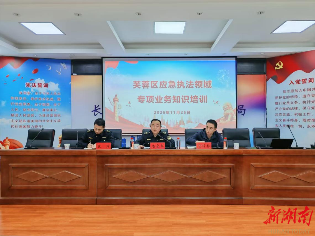 新湖南客户端11月25日讯(通讯员 李思洋)为进一步规范应急领域监管执法全流程,融合各街道应急事务中心与驻街执法大队力量,落实区委区政府关于安全生产工作的重要部署,11月25日,长沙市芙蓉区应急管理局联合区行政执法局组织开展应急执法领域专项业务知识培训,全区13个街道应急事务中心主要负责人和13个驻街综合行政执法大队队员共计60余人参加此次培训。