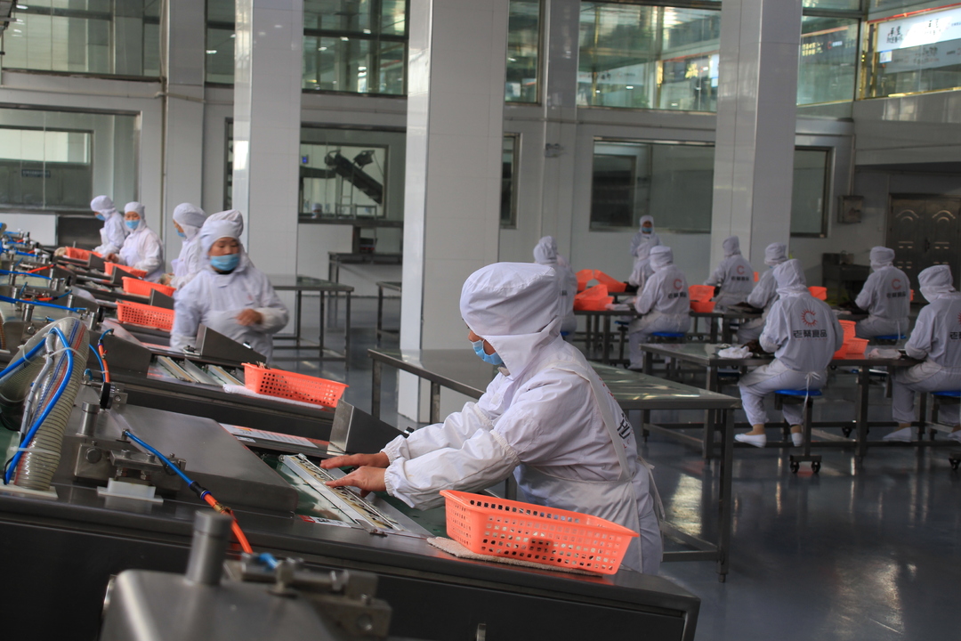 走进新晃老蔡食品有限责任公司生产车间内,扑鼻而来的是牛肉的醇香,工人们正在全自动化生产线上有序进行切割、分拣、封口、分装等工作,现场一片繁忙景象。