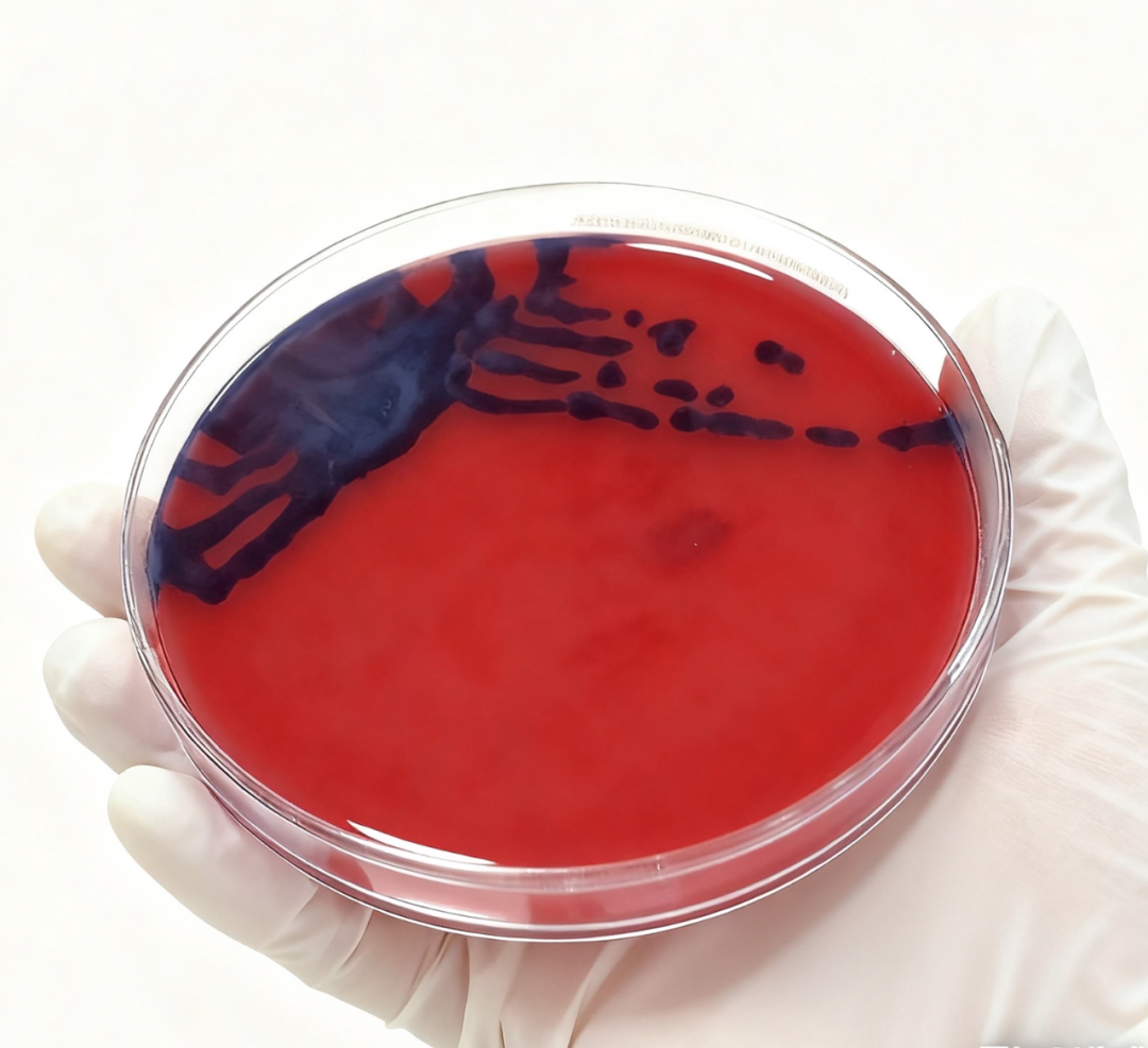 紫色色杆菌(血平板培养的紫色色杆菌,可见其产生的紫色色素)