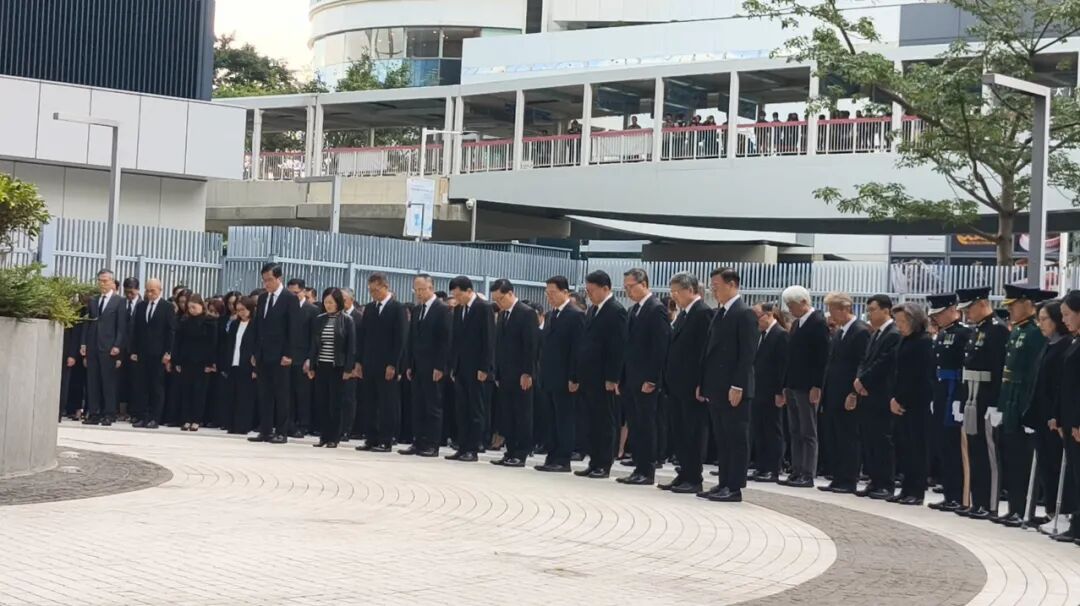 新华社快讯:29日上午,香港特区行政长官李家超、特区政府主要官员和公务员等在政府总部举行悼念活动,哀悼大埔宏福苑火灾中不幸罹难的人士。特区政府建筑物国旗和区旗下半旗。