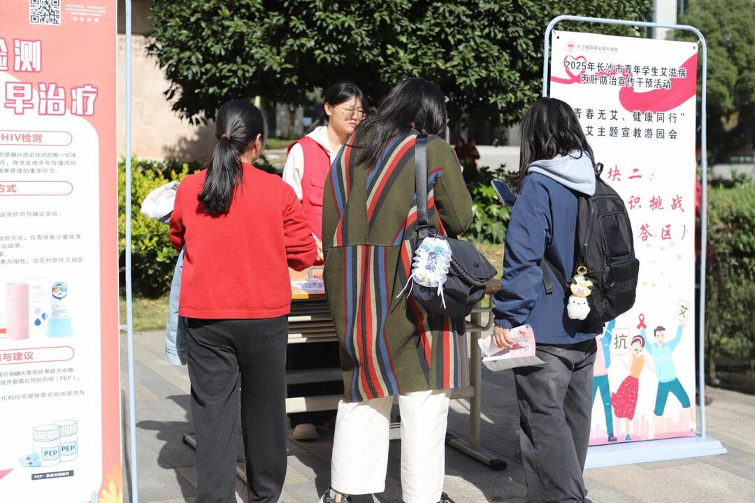 11月25日下午,一场别开生面的“青春无艾,健康同行”防艾主题宣教游园会,在长沙民政职业技术学院招生就业处前坪火热举行。此次活动由长沙市卫生健康委员会主办,长沙民政职业技术学院医务室、长沙民政职业技术学院电子信息工程学院与长沙市仁一红丝带健康促进中心联合承办,并得到长沙市第一医院的技术指导。活动摒弃了传统单向灌输的模式,以沉浸式、互动式的趣味游园会形式,吸引了校内大量学子驻足参与,现场人头攒动,气氛热烈,成为校园内一道亮丽的健康风景线。