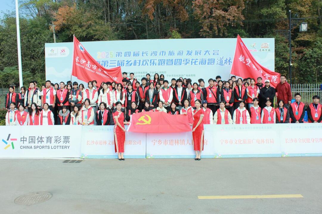 为深入贯彻落实党的二十大精神,推动“体育+文旅”融合发展,助力乡村振兴,2025年11月23日,长沙市第三届乡村欢乐跑暨四季花海跑(道林站)在宁乡市道林古镇活力开跑。长沙南方职业学院航空旅游学院学生党支部积极响应号召,组织104名师生全程参与赛事服务,以专业的态度、热情的微笑,为赛事保驾护航,展现南职青年的责任与担当。