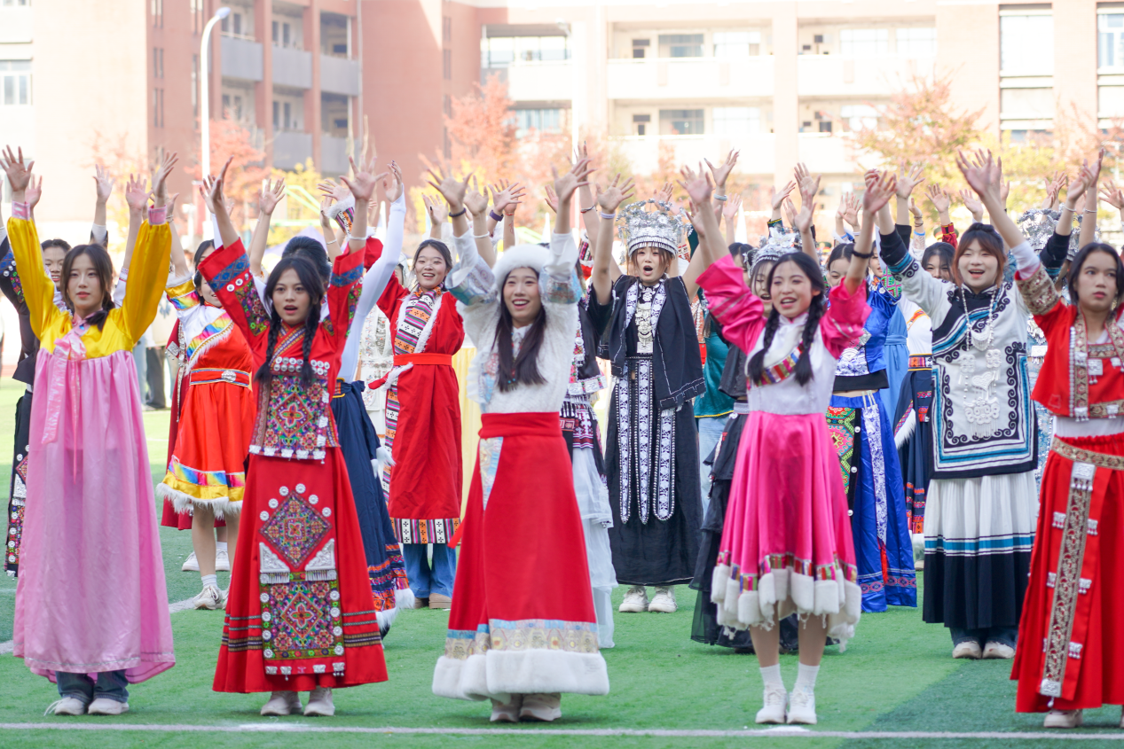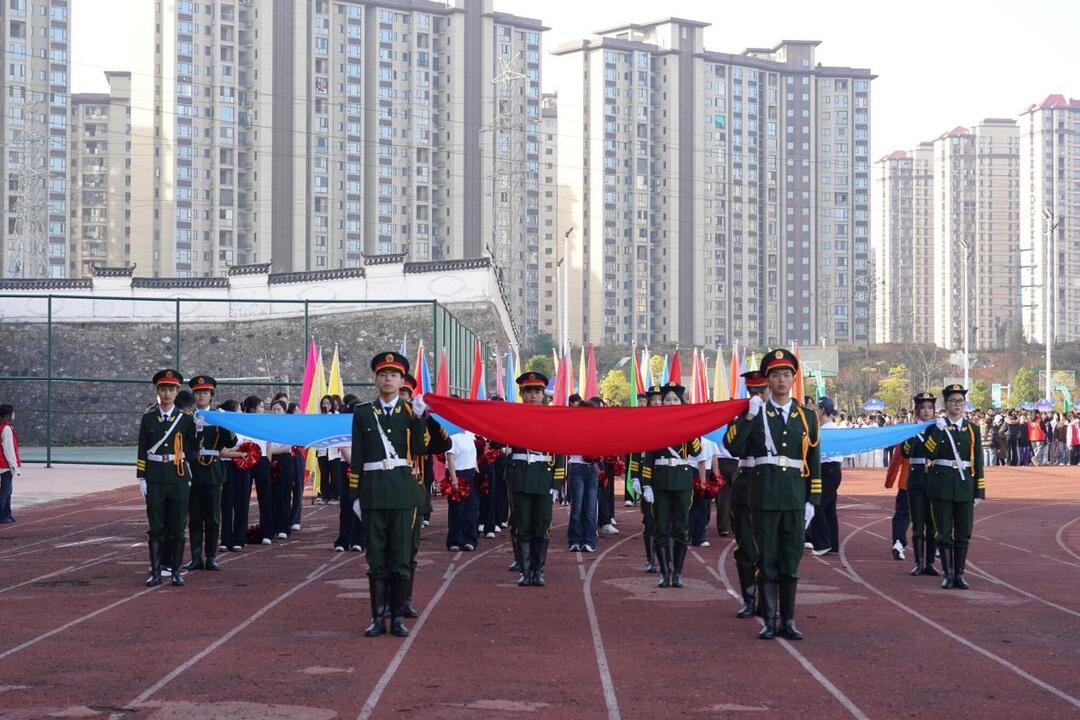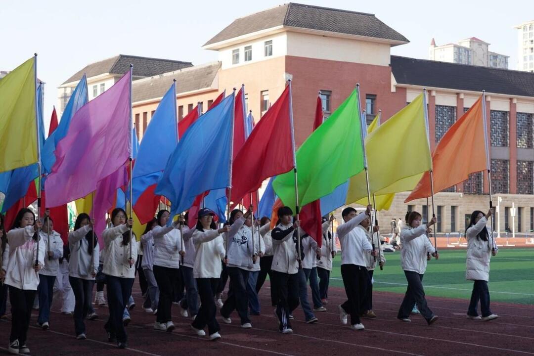 彩旗飘扬,五彩绚丽,队员们满怀激情,不断挥舞着手中的彩旗,每一次律动都诠释着该校师生敢闯敢拼、不断进取的昂扬姿态。