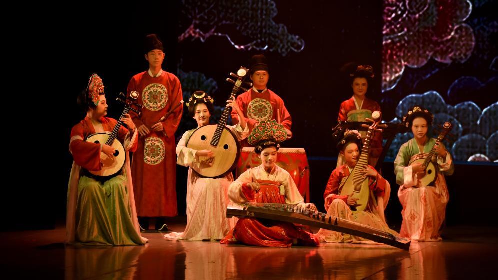 展演环节科技与艺术深度融合。原创音画诗《大唐日月星》运用AI技术,让古画《宫乐图》中的人物“走”出画卷;原生态苗歌、土家歌舞与全息投影科技舞《深AI你青春》同台,传统韵味与奇幻视觉效果交相辉映;压轴节目京剧戏歌《江山有戏》展现了传统文化的历久弥新。