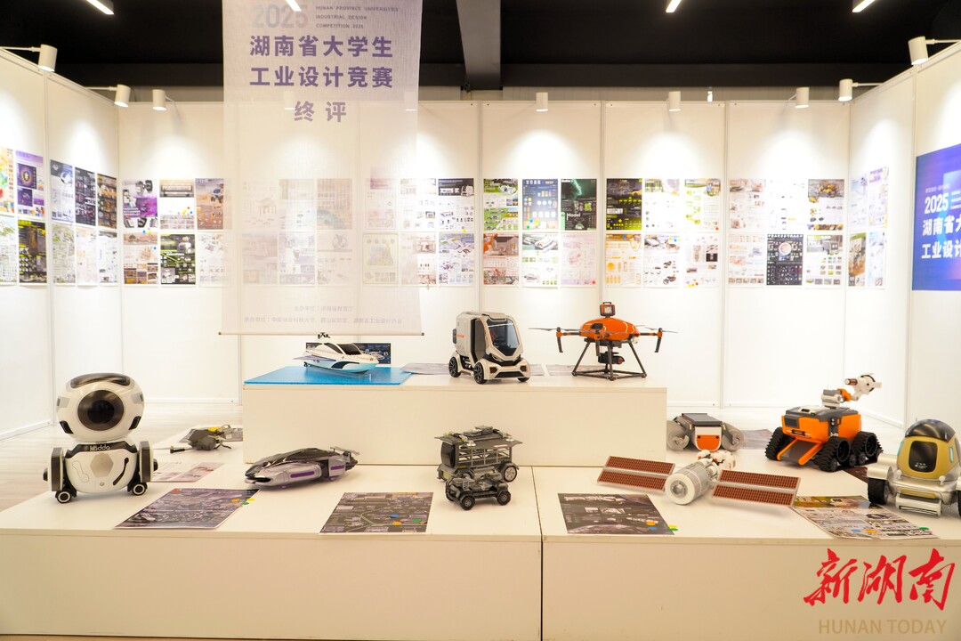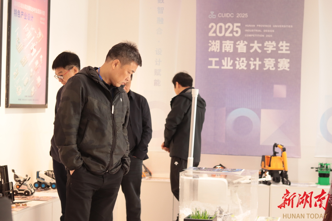 “参赛作品亮点频现,充分体现智能制造特色与数智化转型趋势。”大工赛组委会主席季铁教授指出,在装备制造、低空经济等前沿领域,一批兼具技术含量与实用价值的创新设计应运而生;智能家居与家电类作品更是深度融合AI技术,清晰展现了智能化、绿色化、数字化的发展方向。“学生作品在文化与科技融合、展板表达等方面也呈现出较高水平,这直观反映了湖南高校设计人才培养的积极成效。”