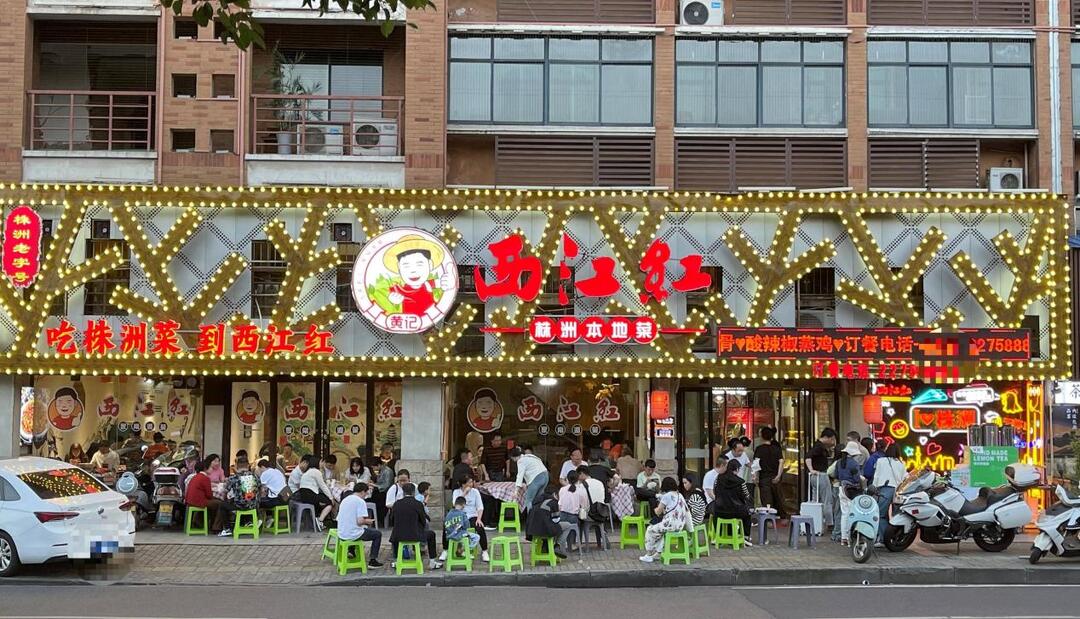 “西江红·株洲本地菜”门口,顾客正在排队等位