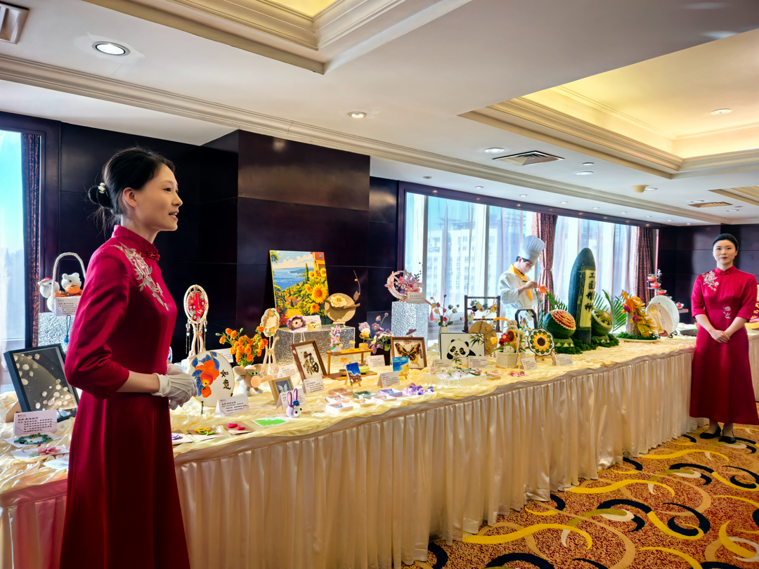 华天酒店大厨演示雕花手艺( 图片均由 李成辉 摄)