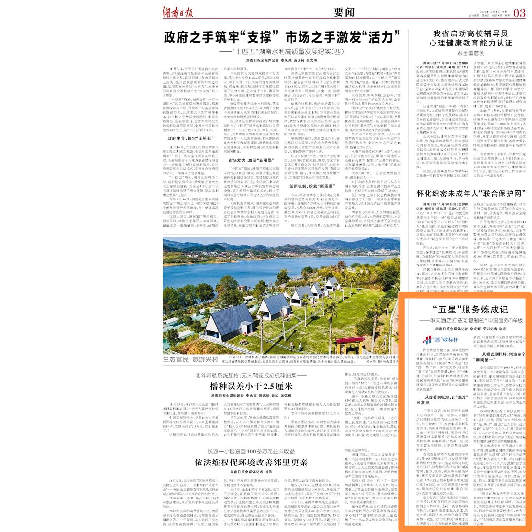 作为体验高度主观、服务流程碎片化的行业,酒店服务常被视为“难量化、难复制”。然而,华天酒店集团股份有限公司(简称“华天酒店”)以“高一些”“多一步”的关怀,将原本“看不见”的服务质量,转化为“可衡量、可感知、可复制”的质量体系,构建起独具特色的“五星”服务质量管理模式,并凭借其获得第八届湖南省省长质量奖。