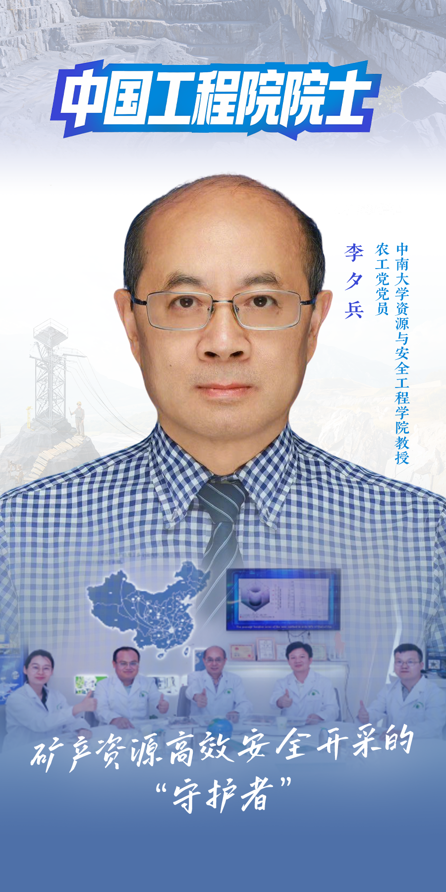 新当选的两院院士中,我省有1位农工党党员当选中国工程院院士:能源与矿业工程学部、中南大学李夕兵。