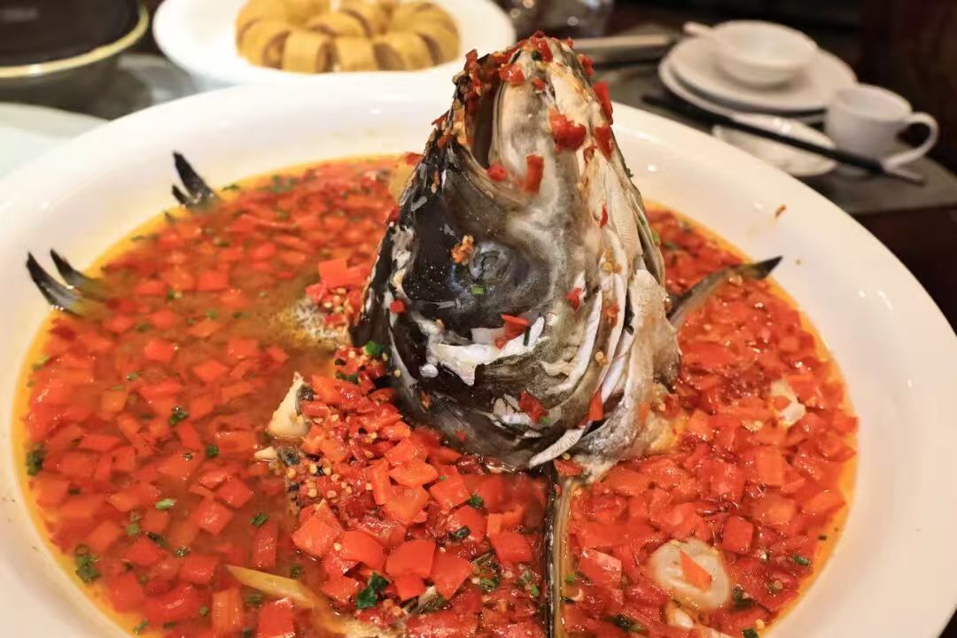 至若湘菜殿堂,剁椒鱼头冠绝群伦:雪白鱼首卧青盘,赤霞椒末覆层峦。蒸腾热气携鲜辣交融,一筷破云,嫩肉吸尽椒魂,舌尖先惊后喜,终成宴席压轴。此味一出,四座罢箸称叹,更令湘味独步九州。