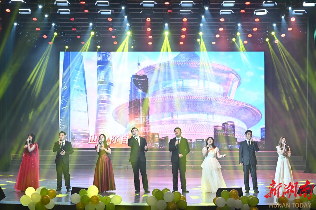 11月30日晚,“湘遇青春,社彩华章”主题晚会在大礼堂华彩启幕。乐队联袂献唱《曹操》《超级英雄》,激昂的旋律瞬间点燃全场,观众随节奏挥动手机灯光,现场宛如一片涌动的星海。朗诵《阡陌行吟》抑扬顿挫,诉说古韵风采。《祥龙踏光·盛世欢腾》里的舞龙舞狮以昂扬的姿态昭示文化自信。非洲舞蹈将异域风情洒满舞台每个角落。旋转、跳跃、踩点,舞蹈《style》《入画江南》肆意展现青春风采。歌曲《我乘着风飞过来》,歌手轻吟浅唱着夜晚的宁静和温柔。相声《我要穿越》幽默诙谐,台上台下互动频频,笑声不断。晚会尾声,恢宏的乐曲与深情的演唱交织,全场观众自发跟唱《我爱你中国》,将整场气氛推向最高潮。