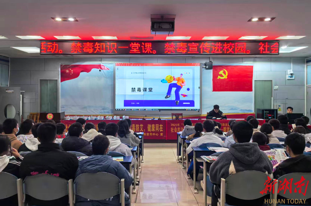 活动现场,江华公安局禁毒大队民警通过展示仿真模型、播放警示教育片和剖析真实案例等形式,向学生们系统讲解了毒品的种类与演变,重点揭露了“奶茶”“跳跳糖”等新型伪装毒品的外观特征与伪装套路,深入剖析了毒品对个人、家庭及社会的多重危害,并传授识别陷阱、抵制诱惑的技巧,引导学生筑牢心理防线,坚定拒毒信念。随后,江华疾控中心专家开展了艾滋病防治专业宣讲,全面解读了疾病知识、传播途径、科学防治措施及国家相关帮扶政策,通过详实数据和通俗讲解纠正认知误区、缓解无谓恐慌,特别强调吸毒与艾滋病传播的关联,警示学生们远离不良场所、践行健康生活方式,同时呼吁大家正确看待感染者,消除歧视、传递温暖,共同营造包容友善的校园环境。