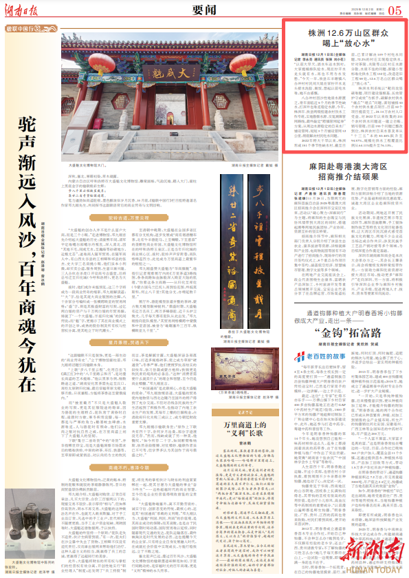 株洲水利系统以“靶向攻坚破难题、项目建设强根基、长效管护守成效”为抓手,破解农村供水“痛点”“堵点”问题。谋划铺排53个农村供水重点项目,目前32个项目提前完工,24.14万农村人口受益。对2022年以来收集的211个农村供水问题逐一建立台账、销号管理,目前193个问题已整改到位。株洲农村自来水普及率从“十三五”末的83.44%跃升至94.57%,规模化供水工程覆盖比例从64.11%提升至76.13%。