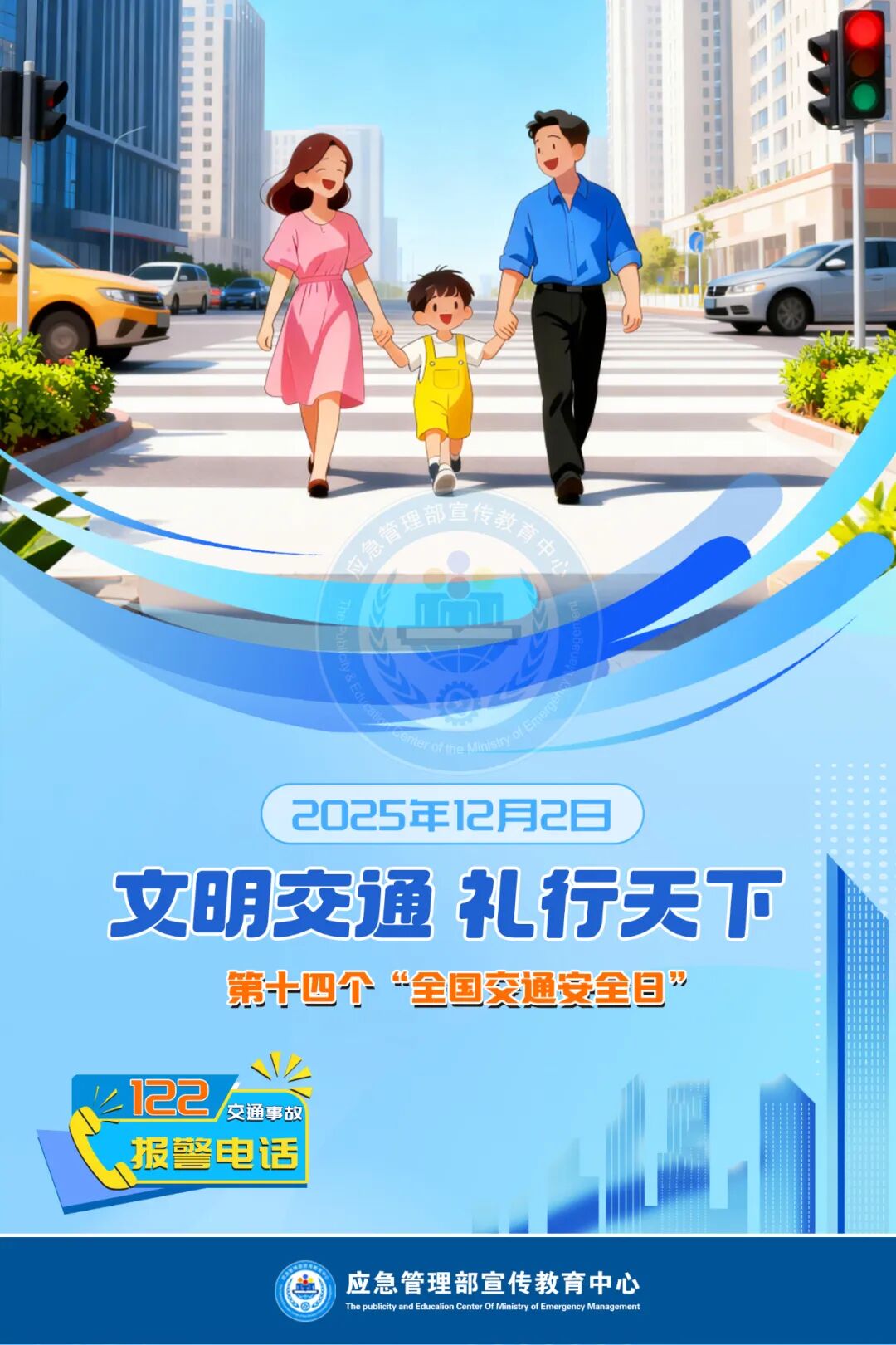 2025年12月2日是第十四个全国交通安全日,今年的主题为“文明交通礼行天下”。这个节日自2012年经国务院批准设立,日期选定“122”既契合道路交通事故报警电话,也因12月进入冬季交通事故多发期,能更好地提醒全民关注出行安全,交通规则记心间,平安相伴每一天。