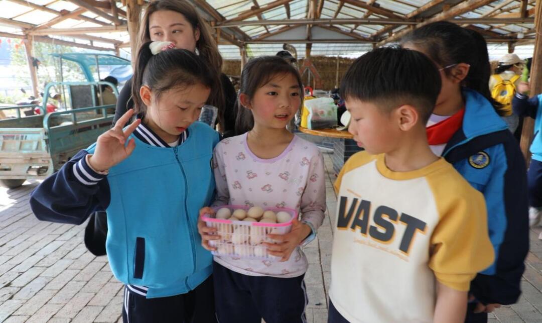 "看!水里有甲鱼!"在综合种养示范区,孩子们趴在田埂边兴奋地指点。产业园区负责人向大家展示了"稻+鳖+鱼+鸭+鸡"的立体种养模式:水稻为水生动物提供遮荫,动物粪便成为天然肥料,形成"一水两用、一田多收"的生态循环。"这片稻田的收入是普通稻田的5倍。"负责人的介绍让孩子们恍然大悟——原来保护环境和增加收入可以同时实现。"农业不只是种地,还能像搭积木一样创造多种价值。"这种对生态农业的启蒙认知,让"绿水青山就是金山银山"的理念变得可触可感。