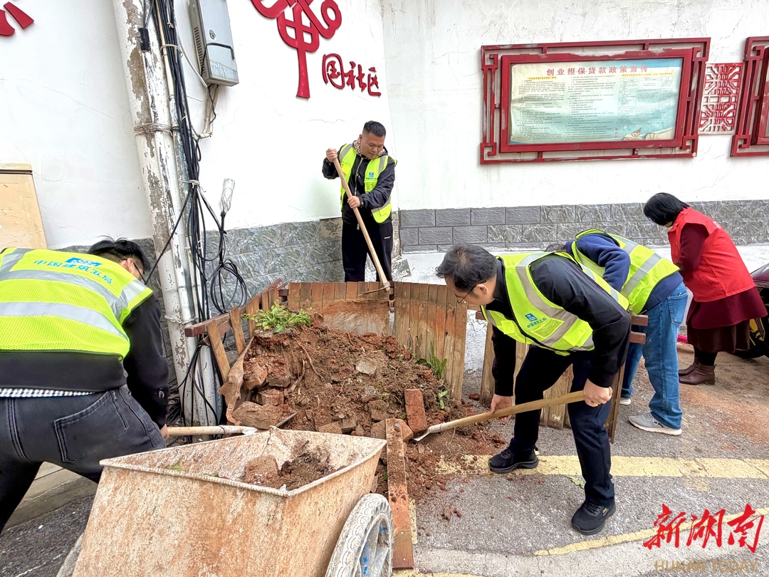活动现场,由参建三方的项目党员、团员青年组成的“青年突击队”队员与长岭社区党员手持铲子、扫把等工具,对长岭社区内道路两侧的陈旧花箱及植物、垃圾、牛皮癣进行清理,疏通消防便民通道,为应急车辆通行和居民安全出行清扫障碍。