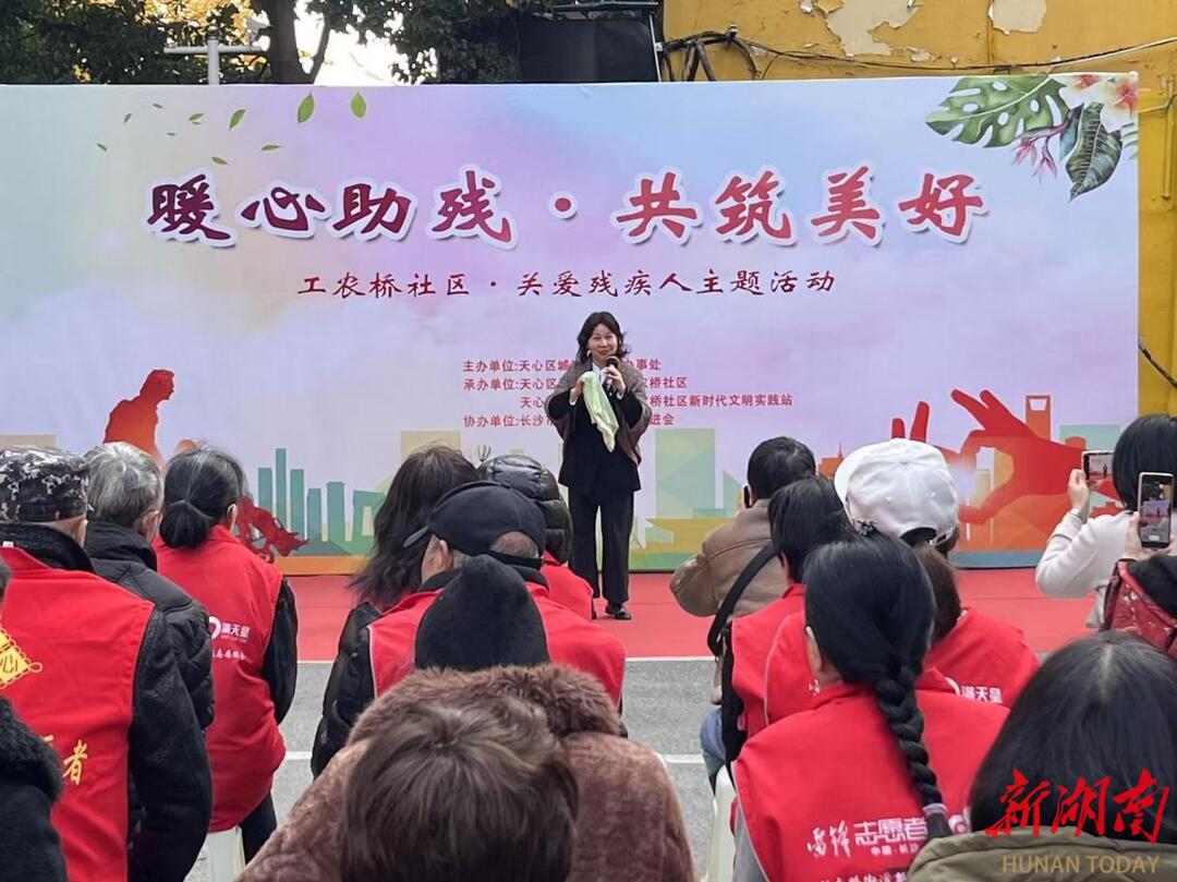 湖南日报·新湖南客户端12月3日讯(通讯员 缪立宇)为营造理解、尊重、关心、帮助残疾人的和谐社区氛围,12月3日上午,长沙市天心区城南路街道工农桥社区联合长沙市社区文化建设促进会、和美新社,在工农桥网格共同举办了“暖心助残·共筑美好”残疾人关爱活动。本次活动吸引了社区残疾人及其家属、居民、志愿者及康复机构代表等百余人参与,现场暖意融融,情谊浓浓。
