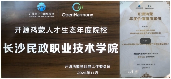 近日,以“一切为了开发者——AI共智·开源共享”为主题的2025开放原子开发者大会在北京举行。本次大会汇聚了来自产业、高校、科研机构的众多技术领袖与开源先锋,集中展示了中国开源生态在人才培养、技术突破与行业应用方面的丰硕成果。在这场开源领域的顶级盛会上,长沙民政职业技术学院凭借在开源鸿蒙生态建设与人才培养方面的突出贡献,一举斩获“开源鸿蒙年度价值商用案例”与“开源鸿蒙人才生态年度院校”两项大奖,与北京理工大学、北京邮电大学等高校同台受誉,彰显了学校在开源鸿蒙育人体系中的重要作用与领先地位。