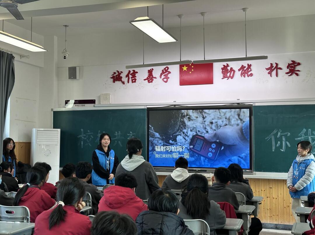 为弘扬“两弹一星”精神,普及核科学技术知识,引导青少年树立正确的科学观,近日,长沙民政职院外语学院“两弹一星”大学生志愿宣讲团走进长沙市雨花区实验中学,开展了一场以“科学认知,合理防护——与辐射和平共处”为主题的科普宣讲活动。