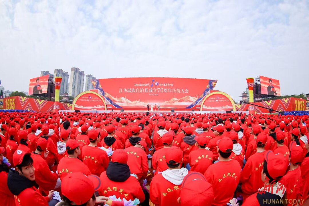 湖南日报·新湖南客户端12月4日讯(记者 杨永玲 通讯员 杨丁香)砥砺奋进新时代,同心逐梦新江华。12月4日上午,江华瑶族自治县成立70周年庆祝大会在江华一中体育场举行。