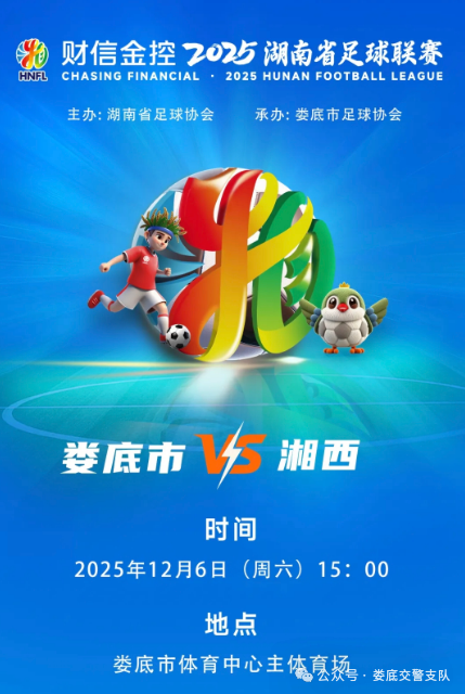 12月6日湘超联赛第13轮娄底队主场对阵湘西队,这是湘超联赛常规赛最后一个主场,娄底公安温馨提示广大球迷: