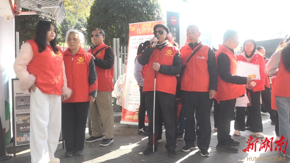 湖南日报•新湖南客户端12月4日讯(通讯员 凌晴香 )12月3日,第34个国际残疾人日如约而至。清晨的长沙开福区寒意未消,全国最美志愿者、中国好人杨德才已集结两支特殊队伍——爱康残疾人就业服务中心的盲人技师与残疾人阳光艺术团成员,大家相互搀扶,沿畅通盲道从东风路下大垅步行至湖南省博物院广场,用一刻钟路程践行对美好生活的自信奔赴。