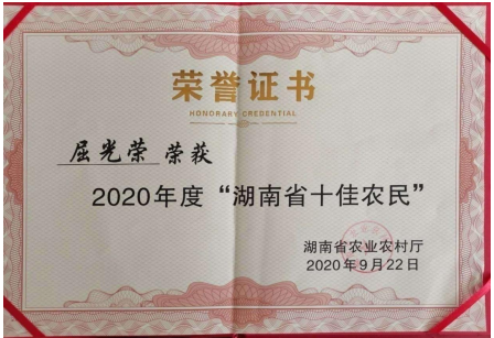 永州市聚丰生态农业开发有限公司总经理屈光荣就是一位践行农业现代化、产业化的代表人物,他带领企业,将“质量”二字贯穿于从田间到餐桌的全过程,永州市聚丰生态农业开发有限公司先后获得国家高新技术企业、湖南省农业产业化龙头企业、扶贫龙头企业等荣誉称号;他本人曾被省农村农业厅评为“湖南省十佳农民”。
