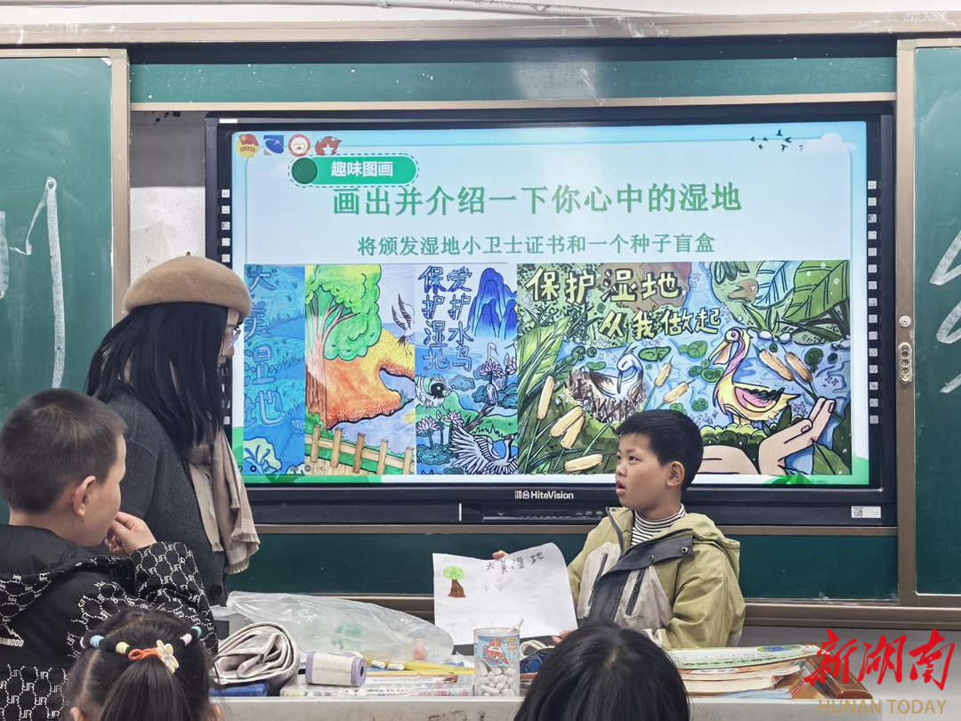 活动伊始,主讲人邵明璐通过湿地科普视频将同学们带入到湿地的世界中。“同学们,请大家想一想,我们为什么要保护湿地呢?”同学们积极发言表达自己的见解。老师结合猛洞河国家湿地公园的具体情况,向同学们讲授湿地的成因、功能以及保护湿地的方法。