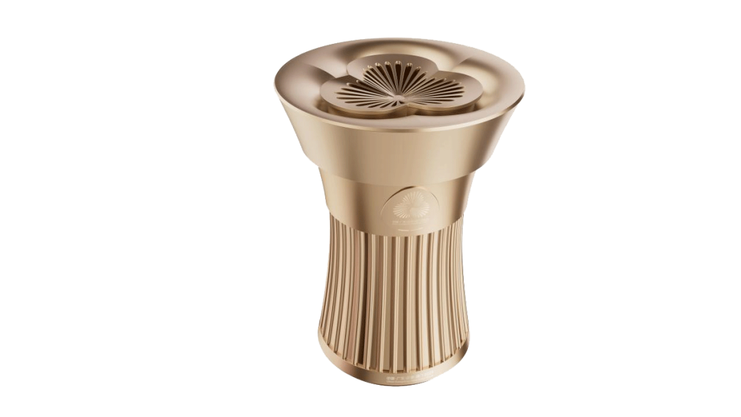 十五运会和残特奥会火种盆名为“鼎盛同心”,又名“同心鼎”,以丙烷为燃料,使用金属材料及喷高温漆工艺制作,整体呈金色,高1080mm,口部最大直径800mm,净重约60kg。设计灵感源自古代瓷器“花觚(gū)”,作为礼制象征与工艺结晶,既承载了传统礼器的庄重典雅,又彰显了当代艺术的审美追求,与火炬“绽放”相映成趣。底部整体为圆柱支撑,上层两部分口径逐次增大,寓意在团结一心的努力下,祖国一步一步强大;顶部为燃烧器,顶端焰口三瓣礼花同根共绽,寓意三地人民心手相牵,共同迈向繁荣新时代。