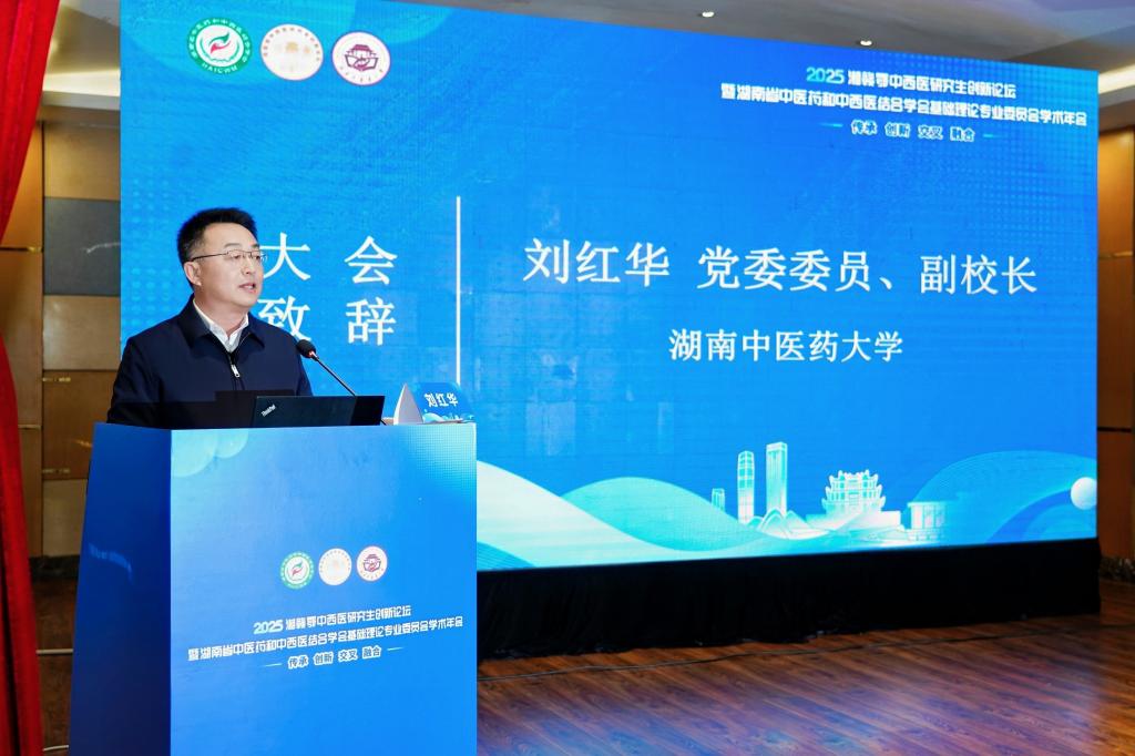 开幕式上,学校副校长刘红华在致辞中,对与会嘉宾表示欢迎,并表示学校致力于推动中西医结合学科发展与创新人才培养。湖南省中医药和中西医结合学会副会长、学校原党委书记秦裕辉教授代表学会致辞,肯定了论坛对促进区域学术交流与学科发展的重要作用。
