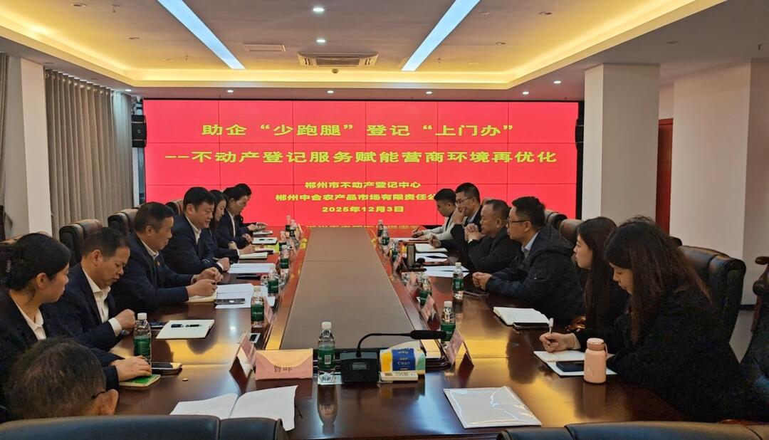活动当天,郴州市不动产登记中心党总支书记、主任曹劲松带队,组织业务骨干深入中国供销·郴州农副产品物流园,开展“助企少跑腿、登记上门办”专项服务活动。中心工作专班直奔企业发展堵点,与企业面对面座谈,全面了解项目一期不动产证办理进度、二期规划土地综合验收以及“交房即交证”筹备情况,重点聚焦企业提出的一期部分房屋用途变更诉求,现场开展资料核查、政策解答与业务对接。