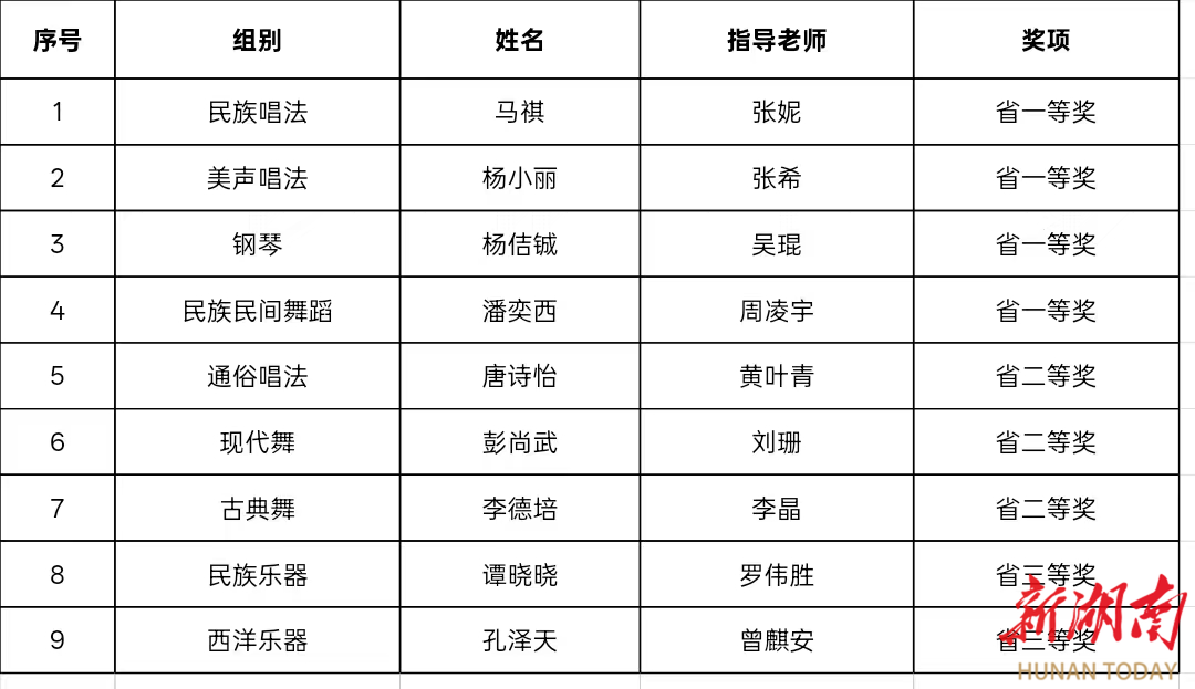 新湖南客户端12月4日讯(通讯员 张湘 熊润娟 赵梓薇)近日,由省教育厅主办,湖南人文科技学院和省中小学美育教学指导委员会共同承办的湖南省第十三届本科院校音乐舞蹈专业学生“独唱、独奏、独舞”比赛收官。经激烈角逐,湖南涉外经济学院参赛学子凭借扎实的专业功底与出色的舞台表现力,在比赛中脱颖而出,共斩获一等奖4项、二等奖3项、三等奖2项,总计9个奖项。